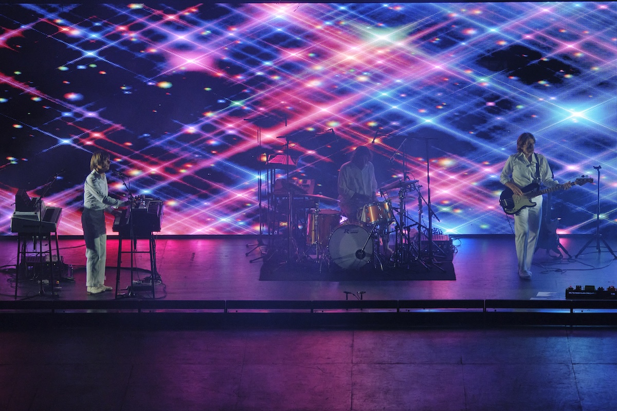 Al mando de Nicolas Godin y Jean-Benoît Dunckel, convidando al baterista Louis Delorme, el ensamble de música electrónica edificó su escenario conceptual en el coloso de avenida Reforma, sumergidos en un lienzo de arte digital rectangular a lo largo del show.
