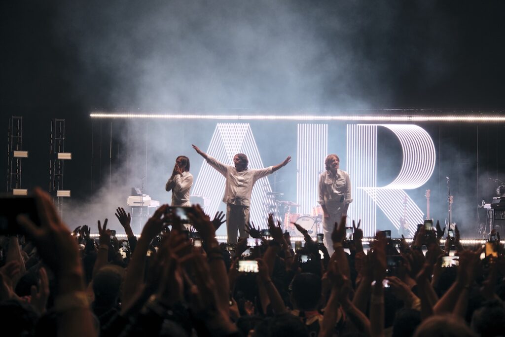 Con el público de pie para los afortunados al frente del escenario, el acto de Air fue de un incesante encanto astral, configurando una conexión instantánea entre los fans y la banda fundada hacia 1995, en Versalles.