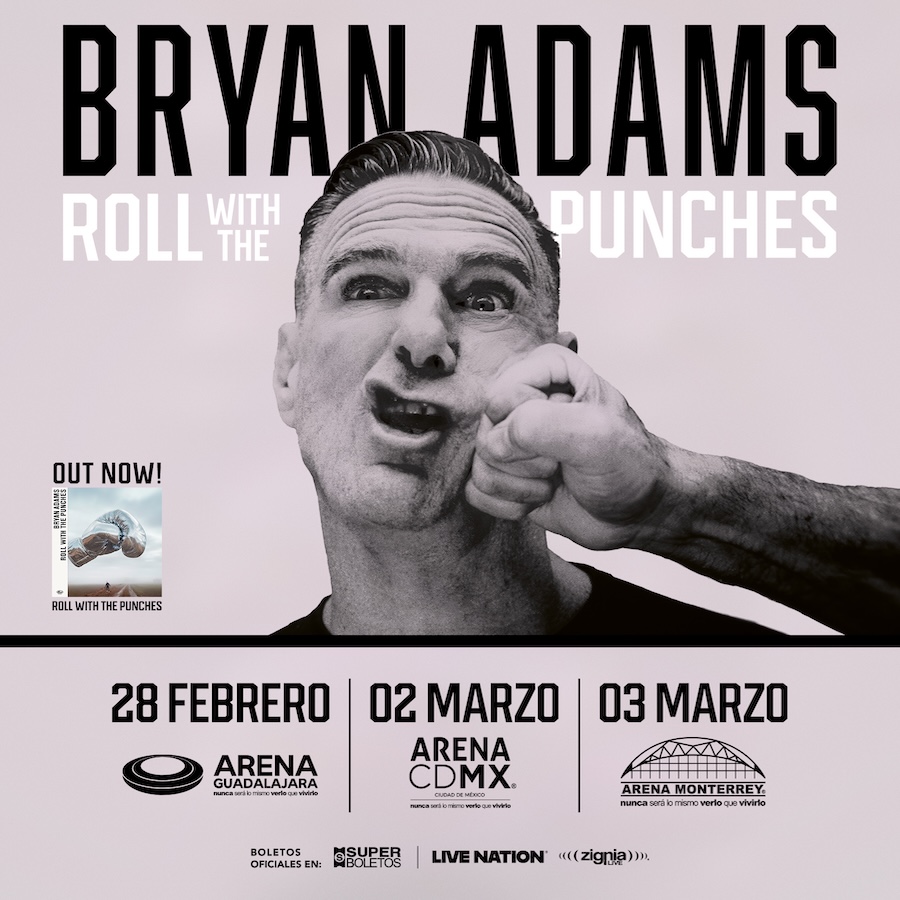 Ciudad de México, México. El rockero canadiense Bryan Adams retorna a nuestro país con una serie de presentaciones especiales, el próximo 28 de febrero de 2026 en la Arena Guadalajara, el 2 de marzo en la Arena CDMX y el 3 de marzo en la Arena Monterrey, como parte de su gira “Roll With The Punches”.