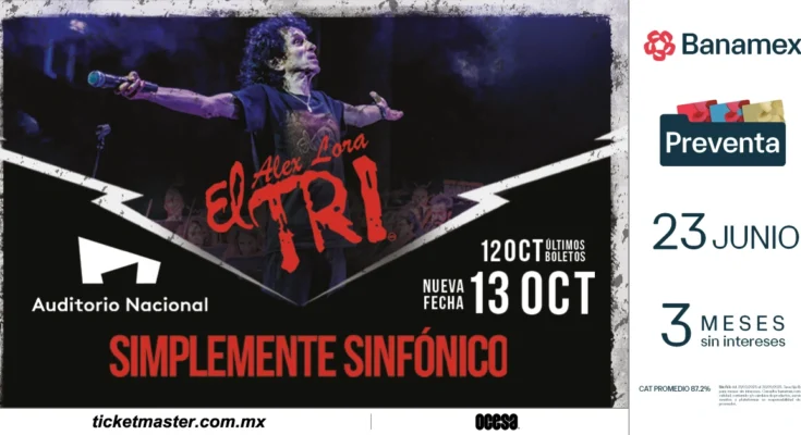 Ciudad de México, México. La legendaria agrupación El Tri al mando de Alex Lora prepara un par de shows en arreglos orquestales intitulados “Simplemente Sinfónico”, el 12 y 13 de octubre en el Auditorio Nacional.