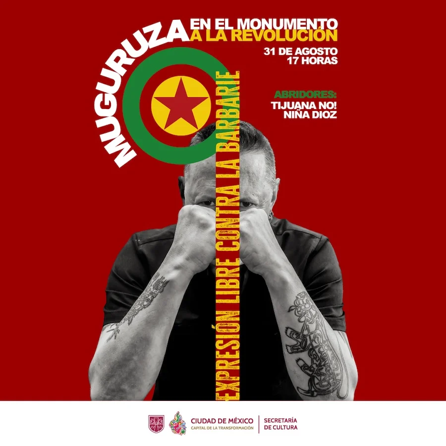 Ciudad de México, México. El artista vasco Fermín Muguruza retorna a la CDMX para celebrar sus 40 años de trayectoria musical con el concierto “Muguruza en el Monumento a la Revolución. Expresión libre contra la barbarie”, a realizarse el próximo domingo 31 de agosto en la plancha de la plaza de la República, donde también participará el grupo Tijuana no! y la cantante de rap Niña Dioz. La cita del show gratuito es a las 17:00 horas.