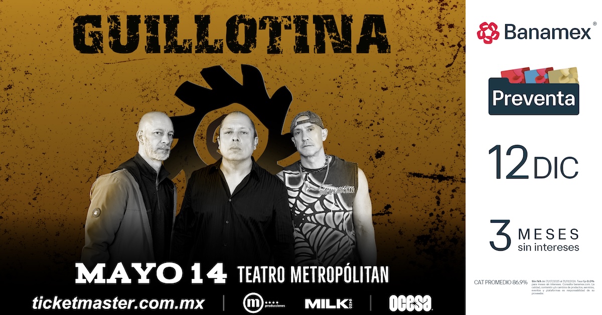 Pocas bandas mexicanas pueden constatar de ser referentes de autogestión, rebeldía e historia como Guillotina. Surgida en los años noventa como una fuerza transformadora que marcó un antes y un después en la escena nacional, la banda se presentará el 14 de mayo de 2026 en el Teatro Metropólitan, reafirmando que su música es sinónimo de legado.