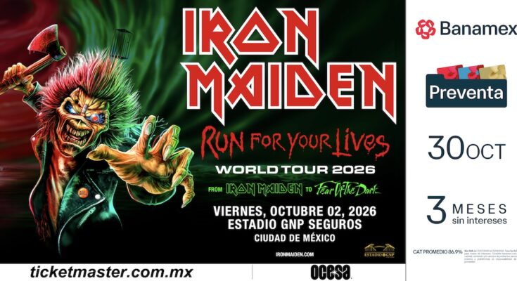 Ciudad de México, México. La legendaria agrupación británica de heavy metal Iron Maiden retorna a México para celebrar su 50 aniversario de trayectoria musical, brindando una presentación especial el 2 de octubre de 2026 en el Estadio GNP Seguros como parte de su gira “Run For Your Lives World Tour”.