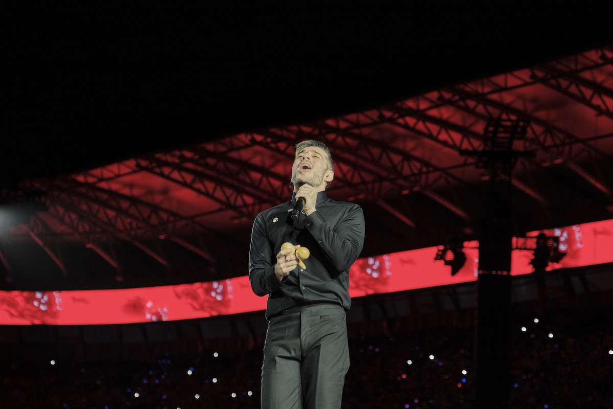 Entre luces multicolores la reluciente producción brilló por una colosal pantalla extendiéndose a lo largo del escenario, incluyendo una pasarela dirigida hacia la plancha del recinto, siendo aprovechado cada espacio por el cantautor de 45 años acercándose a sus fans afortunados al frente de la tarima.