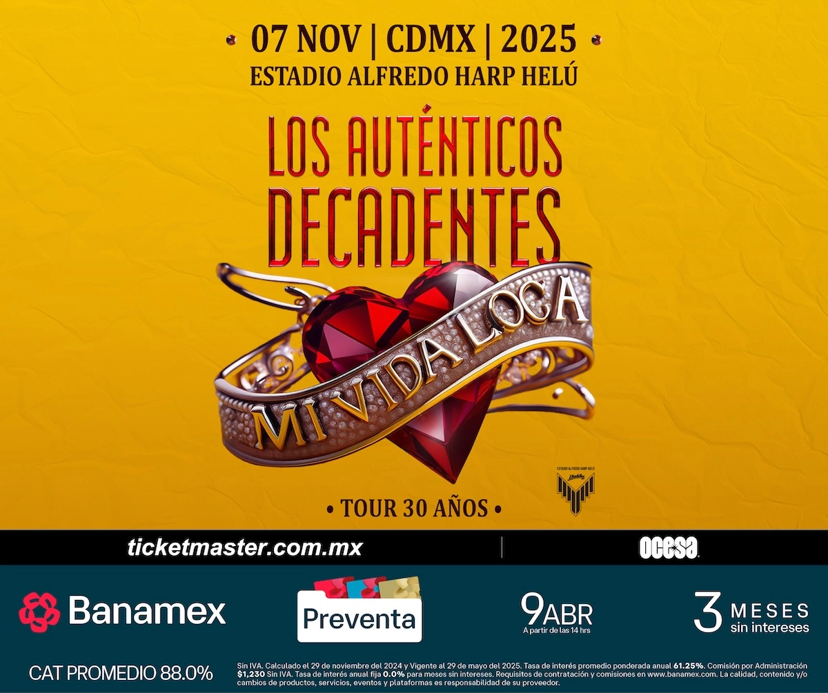 Ciudad de México, México. Los Auténticos Decadentes regresan para celebrar en grande los 30 años de “Mi Vida Loca”, tocando el próximo 7 de noviembre en el Estadio Alfredo Harp Helú.