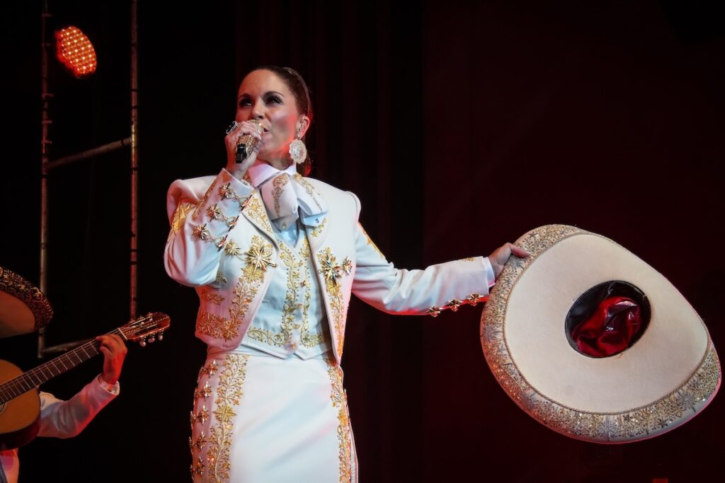La mágica noche fue aderezada a mariachi, calando los corazones en honor a “El Divo de Juárez” Juan Gabriel (1950-2016), “Ya lo sé que tú te vas”, “El Noa-Noa”, “No tengo dinero” y “Será mañana”. El popurrí configuró tributo a Los Ángeles Azules, delineando “17 años”, “Cómo te voy a olvidar” y “El listón de tu pelo”. En colorido ambiente festivo y bailongo, resonó “Disco Samba”.