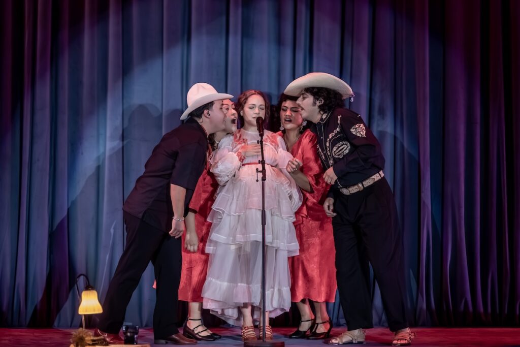 La producción sin parafernalias fue edificada en atmósferas intimistas. Un gigantesco telón azulado fondeaba al ilustre ensamble de músicos integrado por Rodrigo Oliveros (requinto jarocho), Alejandra Paniagua (arpa y coros), Tlali Maribel (marimbol y coros), Ehekatl Arizmendi (jarana, guitarra y bajo sexto), Alfredo Pino (trompeta), Jorge Gamboa (contrabajo), Uriel Herrera (batería), Luis Quintero (percusiones) y Emiliano Dorantes (piano).