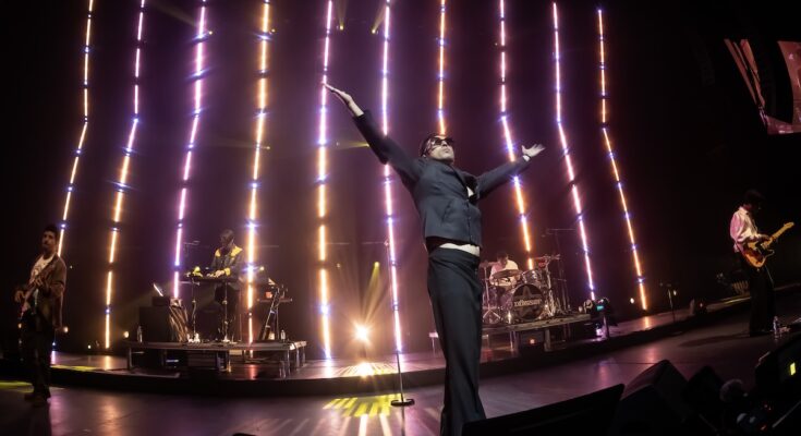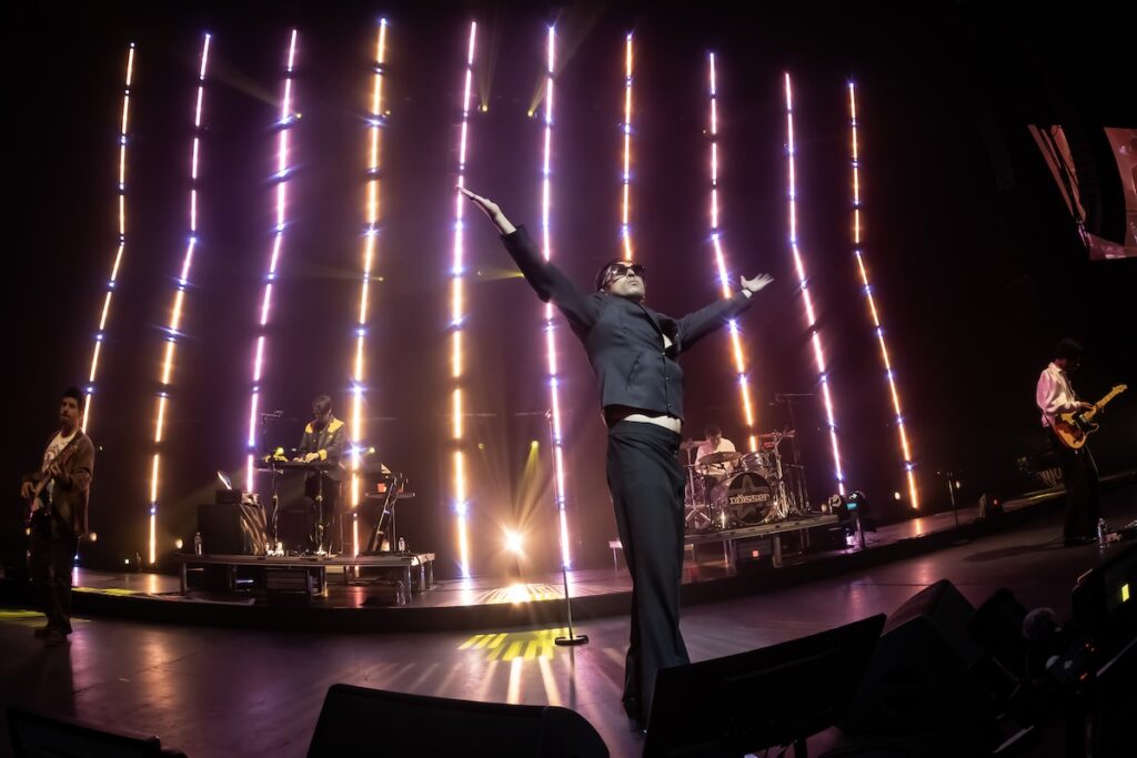 El vocalista lanzó constantes gratitudes, siendo halagado por su fanaticada en coreos inagotables, en un ambiente de buena vibra de principio a fin entonándose “Invencibles”, “Por la música”, “Belleza americana”, “Admirador”, “Escalas “y “Estrella de seda”.