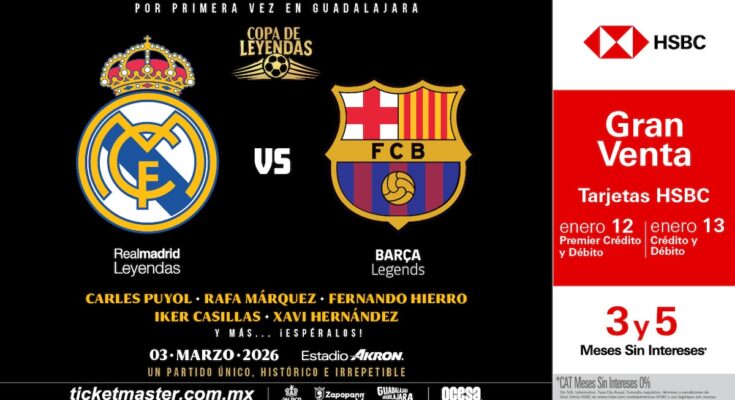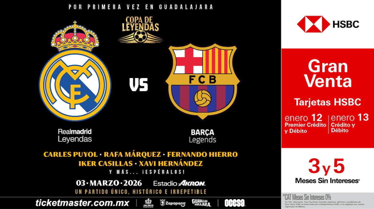 Guadalajara está lista para vivir una noche que quedará inscrita en la historia del fútbol. El 3 de marzo de 2026, el Estadio Akron —sede mundialista— será el escenario de la primera Copa de Leyendas, un encuentro irrepetible entre históricos del Real Madrid y el FC Barcelona, dos de las instituciones más influyentes del fútbol global.