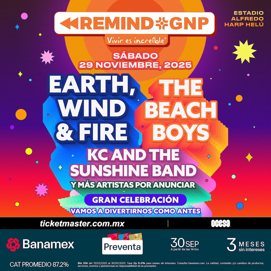 Ciudad de México, México. El festival Remind GNP llega al Estadio Alfredo Harp Helú el próximo 29 de noviembre, con la presencia de Earth, Wind and Fire, The Beach Boys, KC & The Sunshine Band y más artistas por anunciarse.