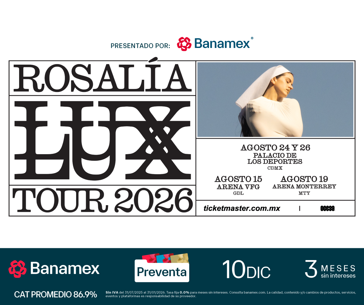 Ciudad de México, México. La artista española Rosalía prepara una serie de presentaciones en nuestro país como parte de su Lux Tour 2026, arribando al Palacio de los Deportes el próximo 24 y 26 de agosto.