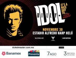Billy Idol traerá su gira “It’s a Nice Day To…Tour Again!” este 30 de noviembre al Estadio Alfredo Harp Helú de la CDMX, siendo este, su primer concierto en la capital desde 2024.
